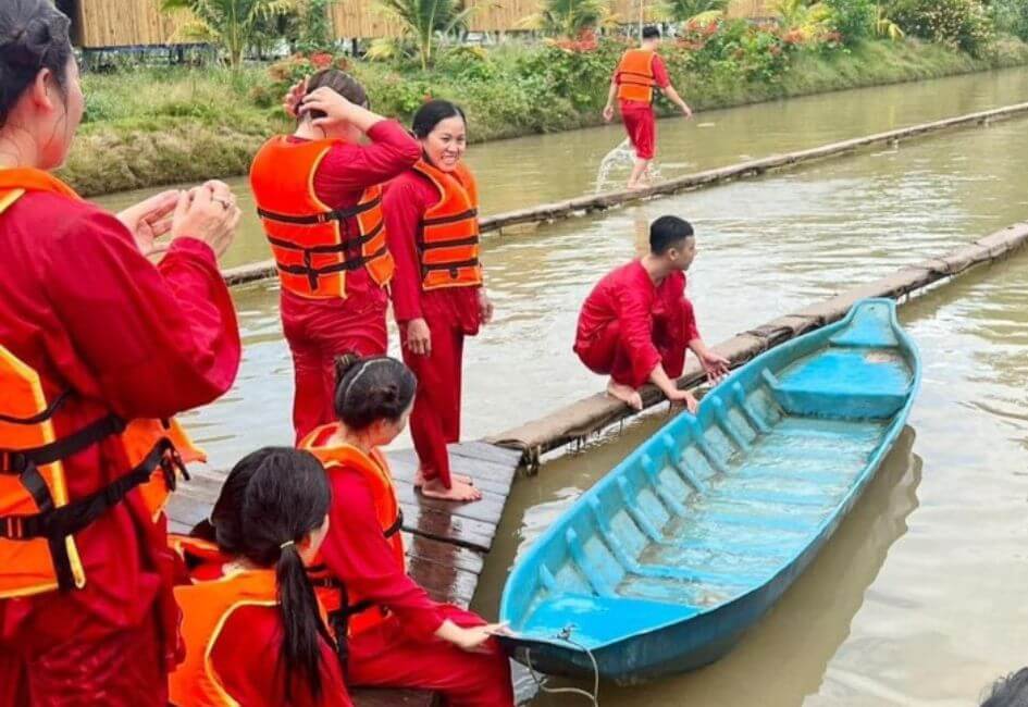 - Đi xuồng chèo trong rạch dừa nước