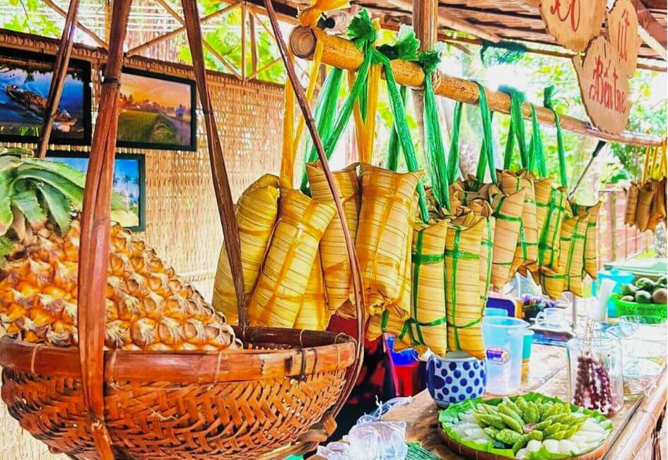Thuyền ghé Cù lao Thới Sơn để thăm nhà của người dân miệt vườn nuôi ong mật và thưởng thức sản phẩm làm từ con ong miễn phí như: